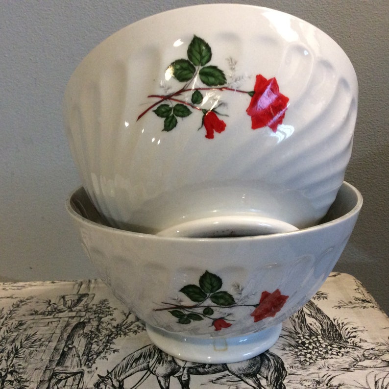 2 French Country Cafe Au Lait Bowls Vintage Porcelain Cafe Etsy