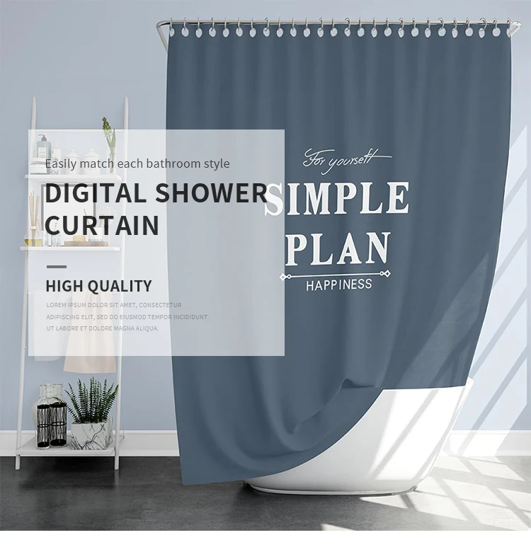 Simple Plan Letter Shower Curtain Bathroom Polyester Cloth
