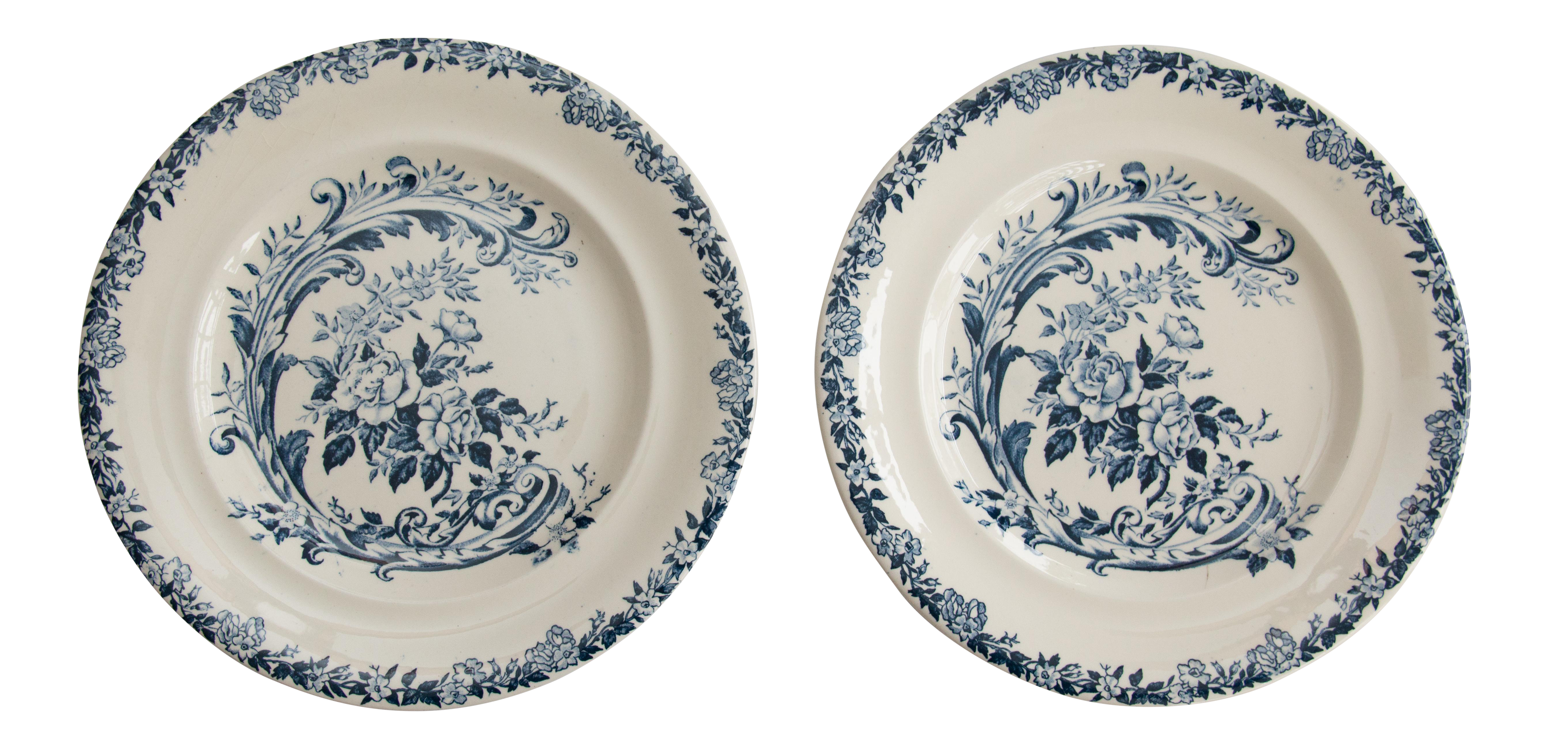 Antique French Country Blue And White Floral Porcelain Plates A