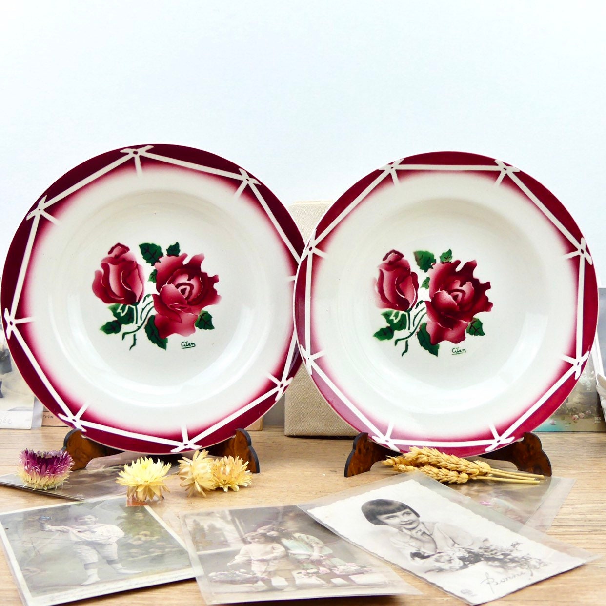 2 Hollow Plates Sarreguemines Digoin Cibon French Country Plates