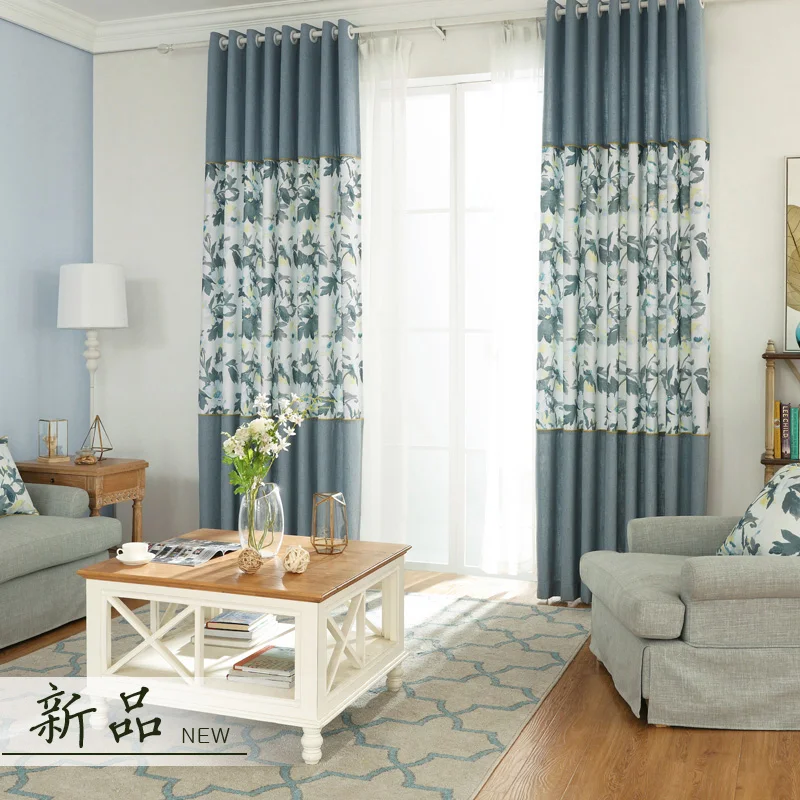 Blue Rustic Window Curtains For Living Room Floral Linen Drape