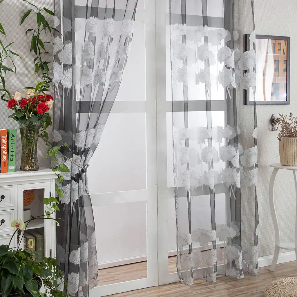 Modern Embroidery Cotton Sheer Curtain Window Screen Curtain Panel