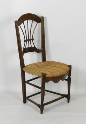 1910s Vintage French Country Rush Seat Solid Walnut Dining Chairs