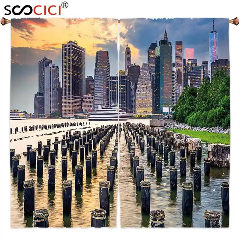 Window Curtains Treatments 2 Panels Cityscape New York Urban