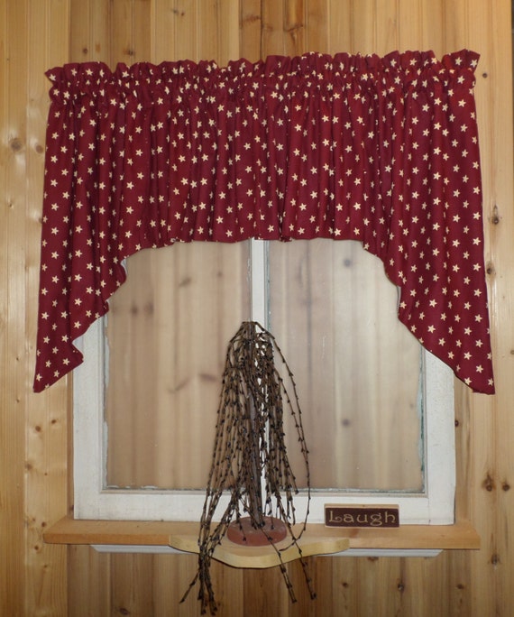 Primitive Country Dark Red With Stars Swag Valance 80 Etsy