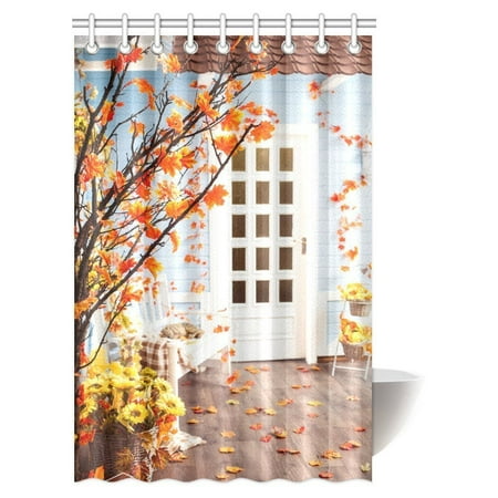 Mypop Farm House Decor Shower Curtain Maple Tree With Orange