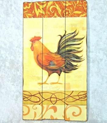 New 13x24 Rooster Wall Art Plaque Wooden French Country Chicken