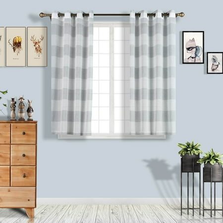 Efavormart 2 Panels Faux Linen Sheer Window Drapery Stripe Window