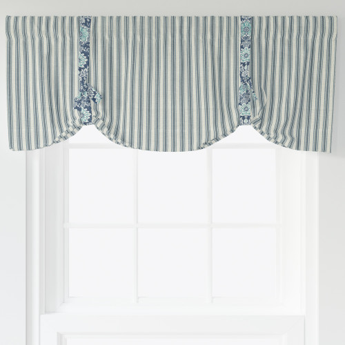Tie Up Valance In Cottage Navy Blue Stripe Lined Close To