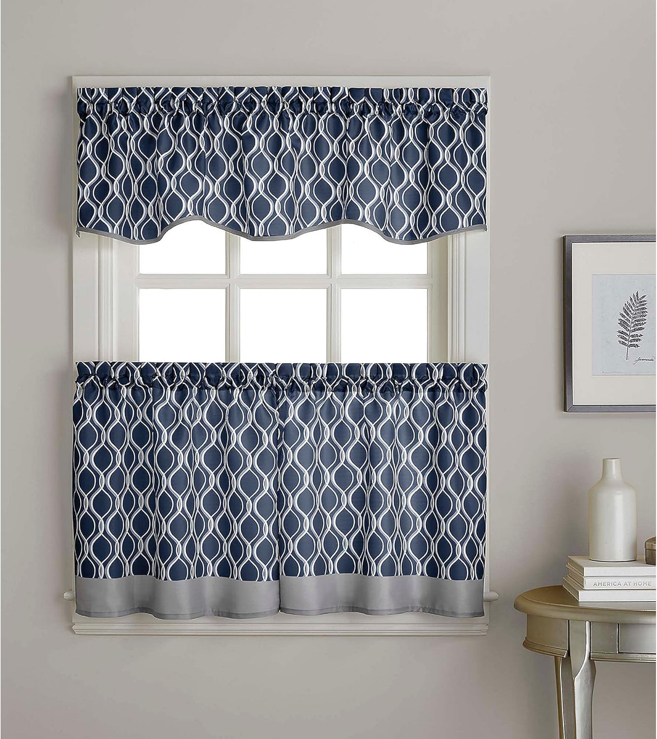 Amazon Com Navy Blue Gray And White Window Treatment Valance For