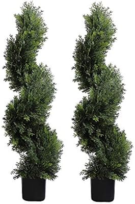 Artificial Cypress Spiral Topiary Tree Potted Indoor Or Outdoor