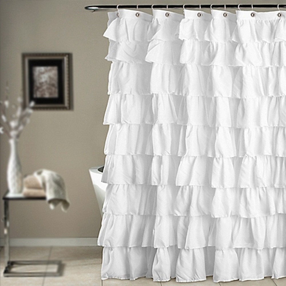 White Shower Curtain Bath Decor Home Supplies Bathroom Solid With