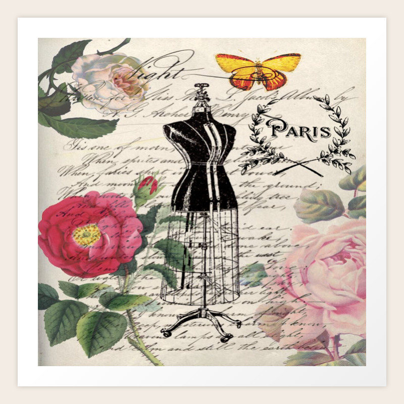 French Country Rose Floral Modern Vintage Dress Mannequin Paris