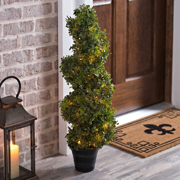 Pre Lit Spiral Boxwood Topiary Kirklands