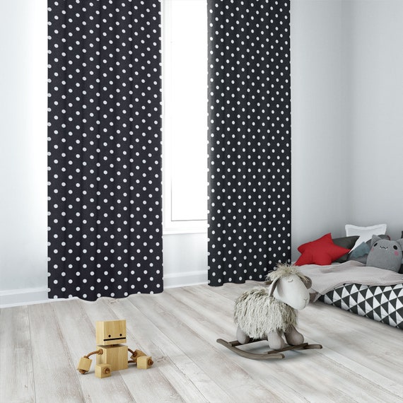 Polka Dot Black White Playroom Curtains Kids Room Curtains Etsy
