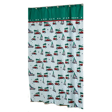 Christmas Shower Curtain Tree Shopping Red Truck Pattern With