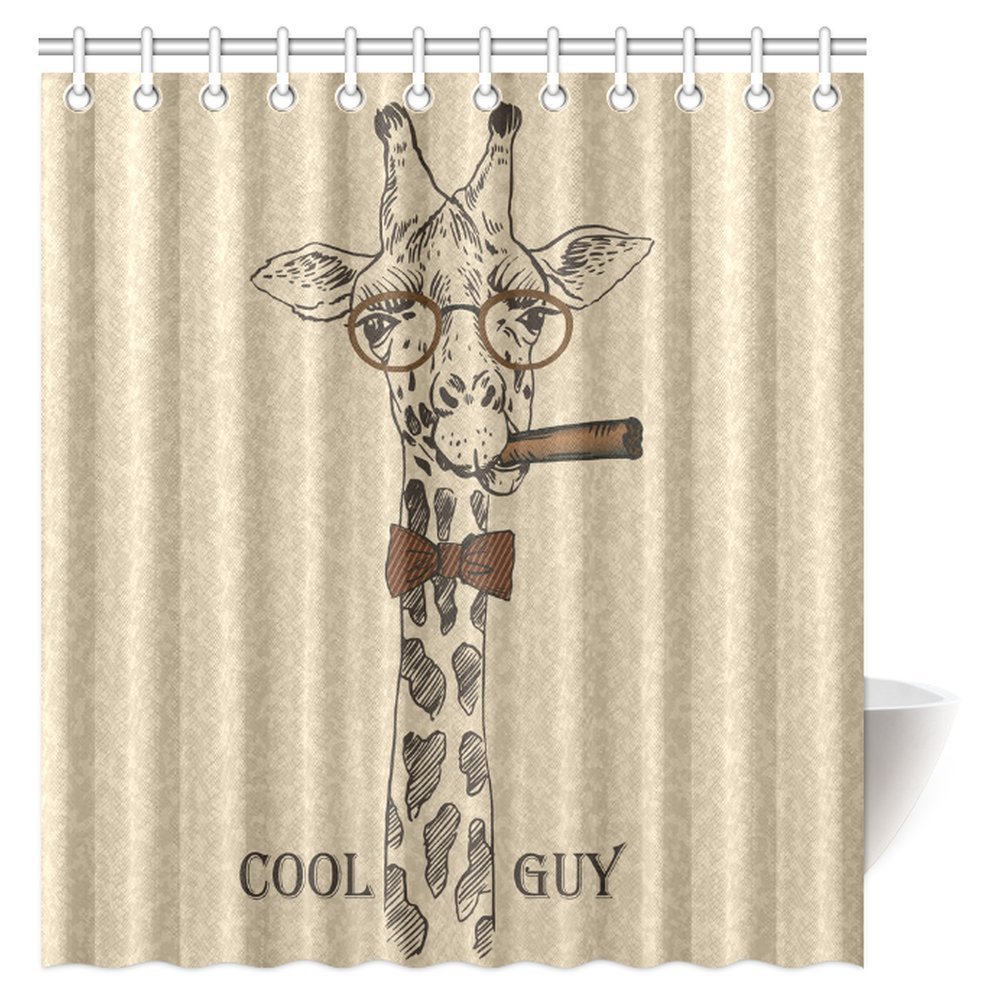 Interestprint Animal Shower Curtain Funny Giraffe Smoking Pipe